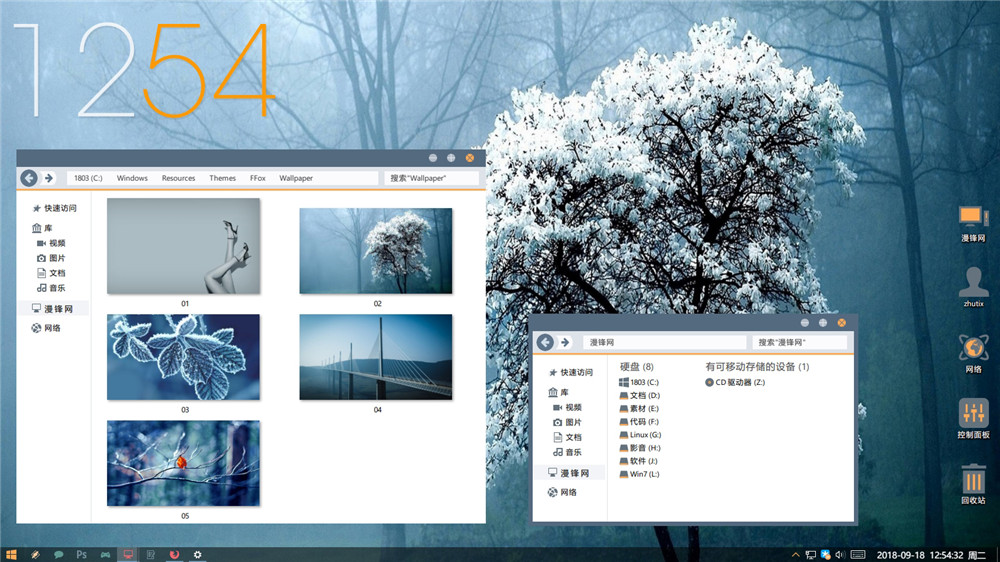 本套装内的Win10主题适用于:Win10 1703/1709/1803/1809/1903/1909