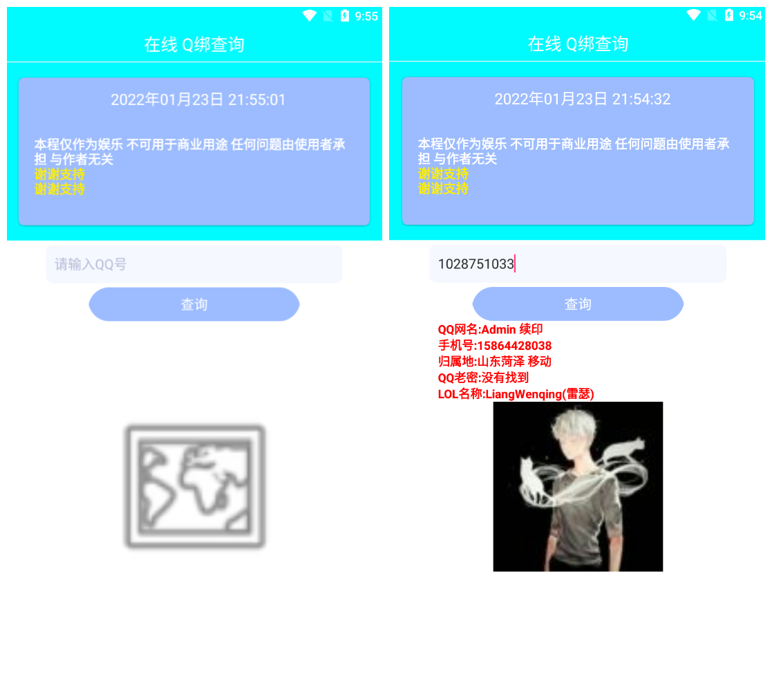 一款手机号查q的工具,Q查手机号小工具app它是个很实用的qq查询软件,还可以根据绑定的手机号查询对应的qq,此软件是免费使用的,有时候会失效,禁止用于商业用途,仅供娱乐。