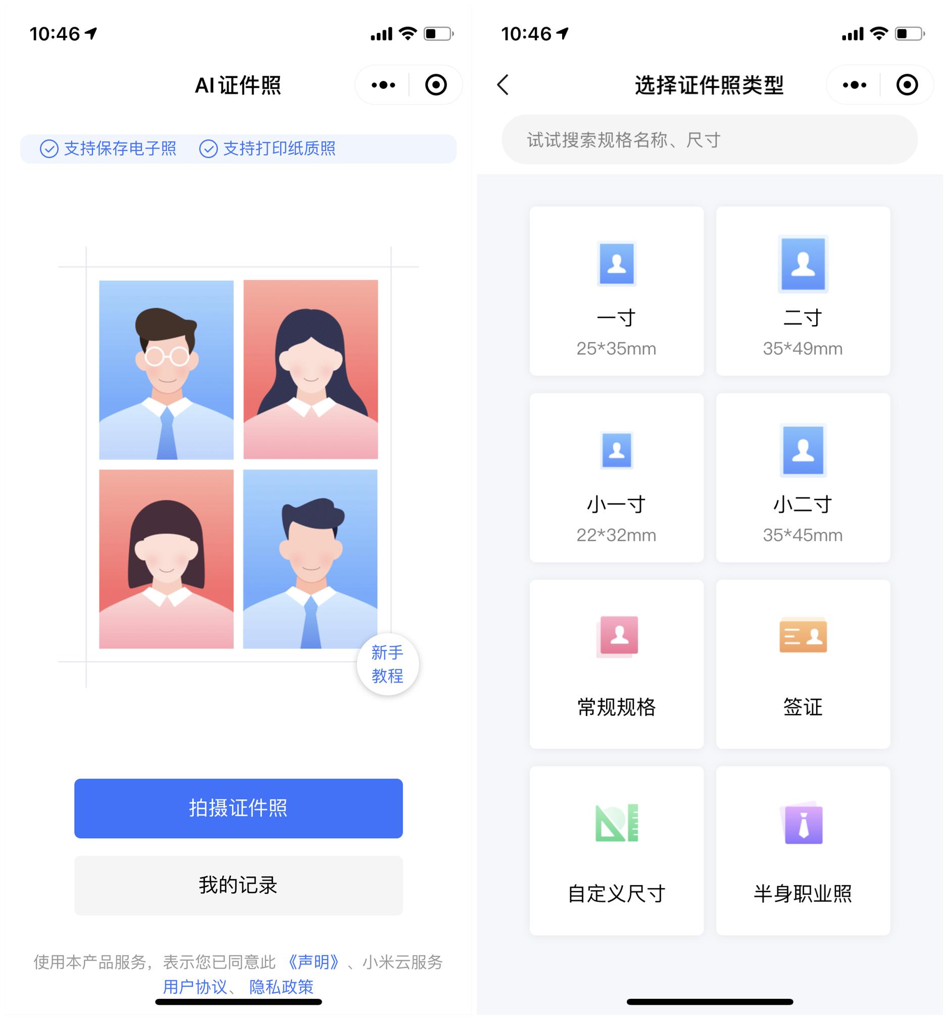 打开微信扫码或微信小程序搜索【小米云证件照】进入(如果经常用到可以收藏小程序)