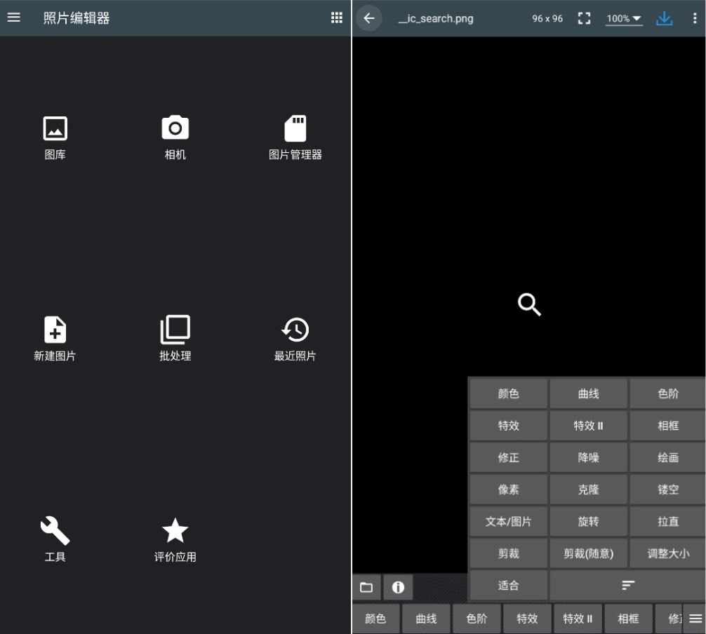 照片编辑器是一款专业图片处理应用,简单来说,这是一款体积小巧,却功能强大的图片处理器,比起同类型的应用,6M的体积可以为你的设备节省好几十兆的空间,功能上却一点也不含糊,该有的功能全都有,欢迎有需要的朋友下载使用。