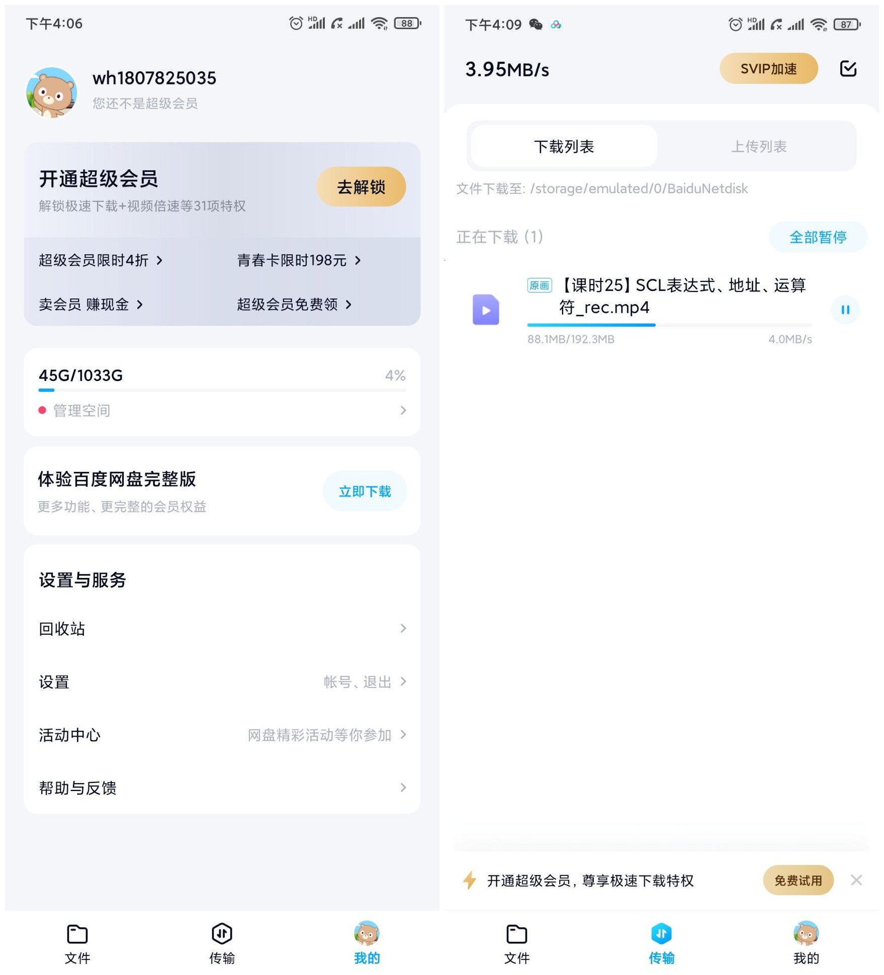 百度网盘青春版,不再限制上传及下载速度,可与百度网盘同一账号、同一设备登录;支持从原版百度网盘导入文件,可用空间为10GB,支持导入3次。